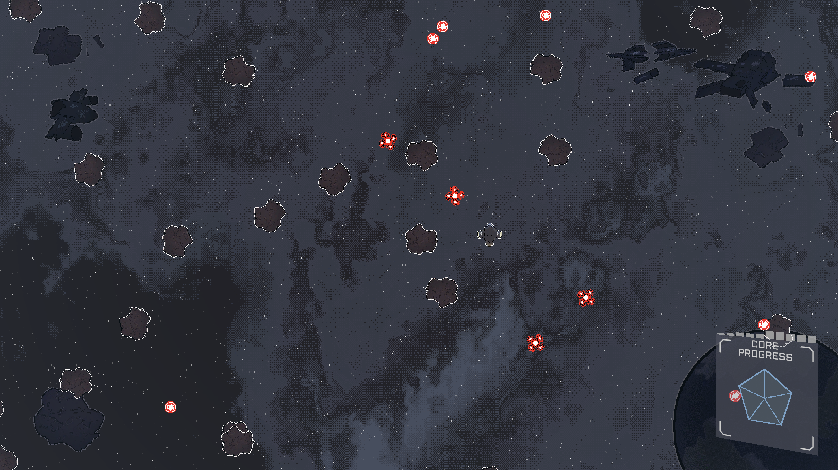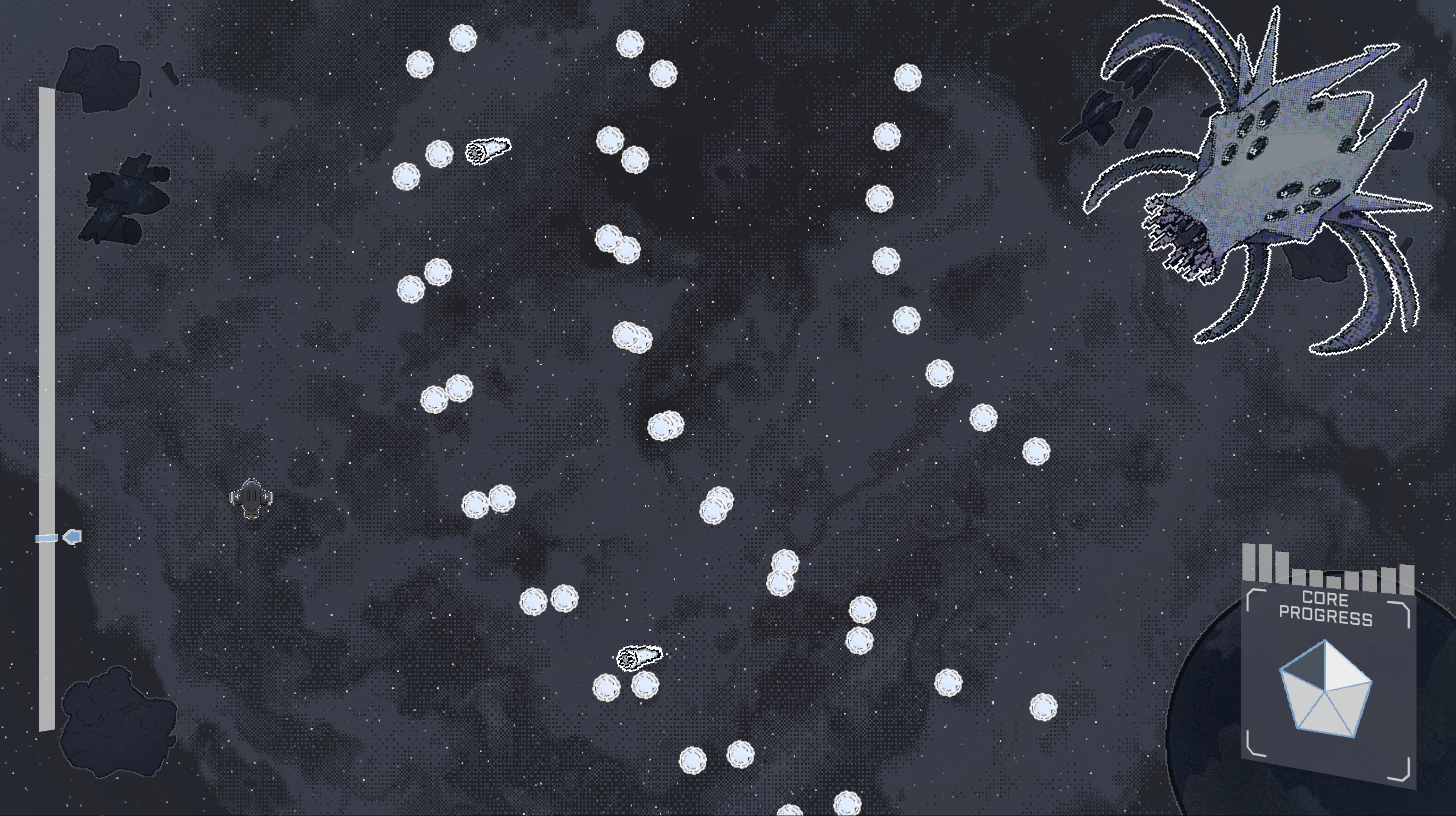 You're caught in the crossfire of an interstellar battle between a robotic empire and an alien invasion! Even worse, the energy core you need to escape is highly unstable, and could destroy your ship if you aren't careful!