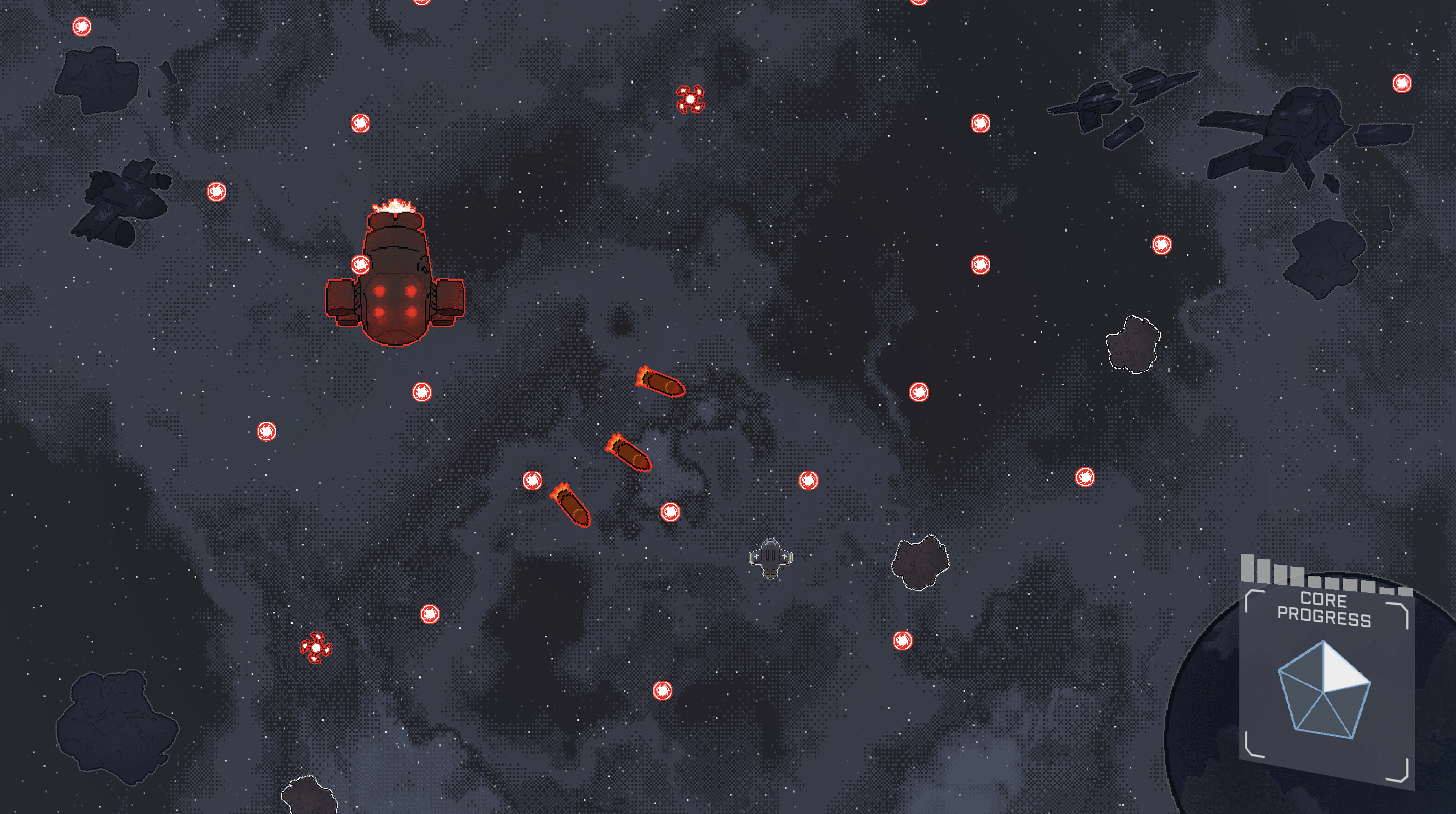 Can you stabilize the energy core while simultaneously evading the attacks of these interstellar threats?